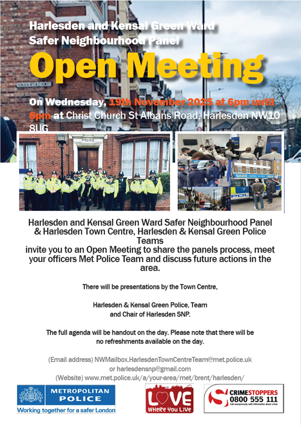 Please review the following update regarding Anti Social Behaviour which some members around this area have highlighted as an issue of concern on the Met Engage priority survey. You are warmly invited to attend the Harlesden & Kensal Green Ward Safer Neighbourhood Panel Open Meeting on Wednesday 19th November 2025 @ 6.30pm @Christ Church Hall St Albans Road NW10 8UG. , where local residents and community members can come together to hear directly from the police about the work being carried out in our area. This is your chance to learn more about current priorities, ask questions, and share your views on what you would like us to focus on to make our neighbourhood safer. Your voice matters, and by joining the discussion you can help shape the future of policing and community safety in Harlesden & Kensal Green. Antisocial behaviour can come in many forms and can require support from more organisations than just the police. There are 13 different types of antisocial behaviour that we may be able to help with, including abandoned vehicles, littering or drugs paraphernalia and street drinking. A full list of what we categorise as antisocial behaviour is available on our website.
