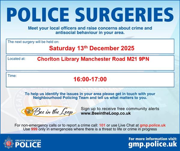 ** Police Surgery | 13/12/2025 | Chorlton Library - Date Change ** |