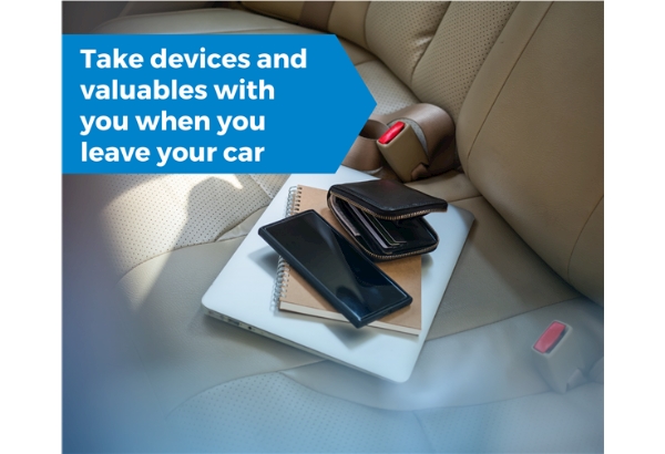 1. Lock your vehicle at all times 2. Close windows 3. Remove all valuables 4. Don’t leave shopping on the back seat 5. Park your vehicle in a safe and well-lit area