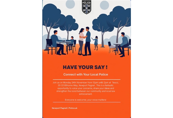 Your local Neighbourhood Team will be at Tesco, 20-22 Elthorne Way, Newport Pagnell from 12pm - 2pm on Monday 24th November Please take this opportunity to raise any concerns you may have and to find out what we are doing to tackle the issues that matter to you.