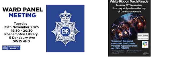We are having our next Ward Panel Meeting, after the VAWG White Ribbon Torch Parade that's starting at 6pm outside the Old Coop building at the top of Danebury Ave.