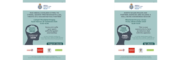 Hi, We invite you to come along to our FREE wellbeing event on FRIDAY 28TH November at Rhos Library - 13:30-15:30. Mental Health is a journey we all navigate. Several agencies will be in attendance with information stand to allow you to pop along to have an inforamal chat and gain some information.