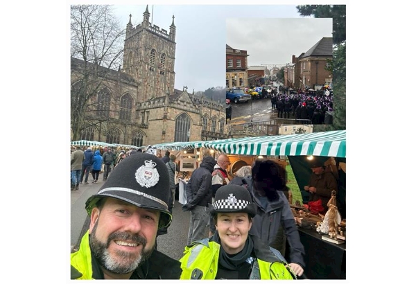 PC Dee Stanley & PC Kev Johns from the Malvern Safer Neighbourhood Team have been on foot patrol today in Great Malvern where there has been a Christmas market & family activities in Malvern Priory. The Great Malvern light switch on will be at 17:30 hrs at Belle Vue Terrace. More information can be found here: Great Malvern Christmas Festivities & Lights Switch On 2025 - Visit The Malverns