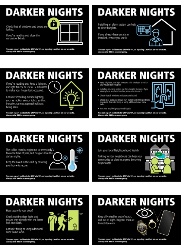 Good evening from the Coldhurst & Westwood Neighbourhood Policing Team Here’s are some more Leaflets offering advice over the dark evenings and afternoons, its all relevant to keep you and your property safe over the next few months. Car Crime is still high on the agenda in and around Coldhurst, but it no longer seems to be confined to Car Parks, so please lock you cars, ensure no tools are left in vans where possible and try to park in a well lit and well populated location where people can witness anything untoward. Rgds Martin Coldhurst PCSO