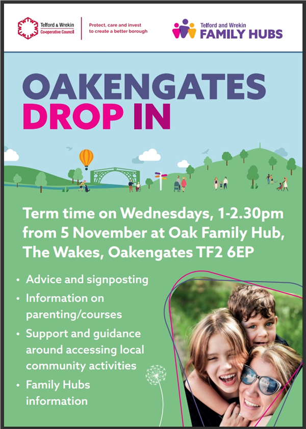 Dear resident The attached flyer and document are the Family Hubs current community offer. Family Hubs support families with children 0-19 (or 25 with SEND), families can seek advice and guidance through their family support drop ins available at various locations across Telford and Wrekin areas. They also provide a 4-week Parenting Together programme (information attached) and Playing Together sessions for parents of children 0-5 (information attached).