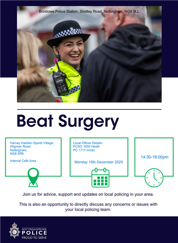 This is to let you know that your local Safer Neighbourhood Team will be at event shown below in your area. Please take this opportunity to come and meet us to raise any concerns you may have and to find out what we are doing to tackle the issues that matter to you. Everyone is welcome and it would be great to see you there.
