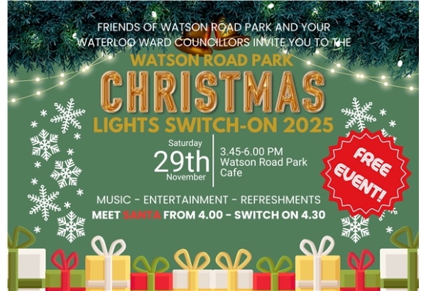 Dear Resident Date for your diary. This coming weekend Sat 29th Nov, the friends of Watson road park are holding their annual Christmas light switch on. Also in attendance will be your local NHP team and Santa ! They will also be raising funds for the RNLI. See attached flyer for further details