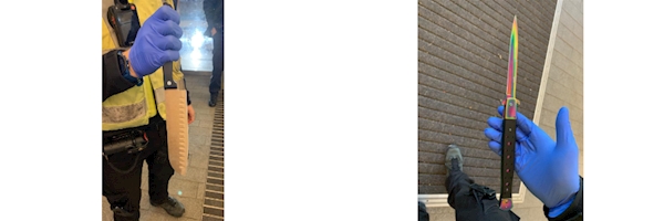 As well as the numerous searches carried out, two arrests were made for offences such as drug possession and theft / fraud - and as you will see from the images, two further arrests for possession of offensive weapons.