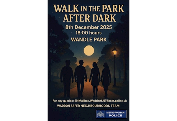 We are inviting local women to join officers for a Community Walk around Wandle Park. This initiative supports the Violence Against Women and Girls strategy by promoting open conversation, visible policing, and community partnership. This walk is designed to help build confidence, improve safety, and reinforce our shared commitment to a safer community for all.
