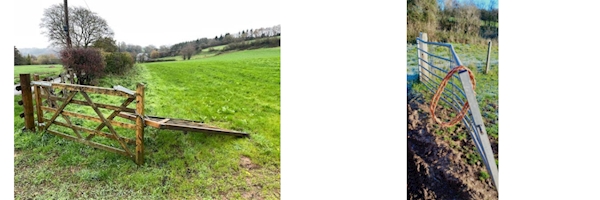 These gates in two different locations in Ross on Wye have been rammed, causing considerable damage, this has then led to illegal trespass, crops being damaged and illegal hunting.