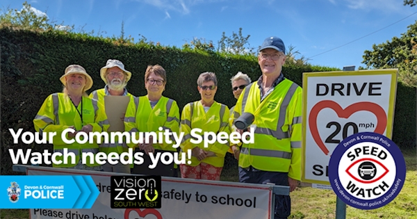 Each year, an average of 28,000 people are killed or seriously injured on the roads in the UK - and research has shown that speed is often a contributing factor. In Devon & Cornwall, local groups - including Community Speed Watch teams - are working together to reduce the number of fatal and serious collisions on our roads. To learn more about how Community Speed Watch benefits local communities and encourages drivers to be more careful, please watch this short video Your local Launceston Team are looking for new members to join them. If you have a few hours spare a month and are interested in joining the team, or just want to find out more about the scheme please email