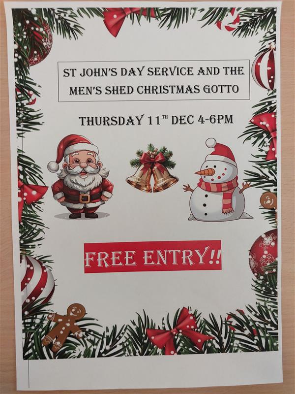 St John's Day Centre Cwmbwrla Men's Shed welcome everyone to their Christmas Grotto on Thursday 11th December 4-6pm.