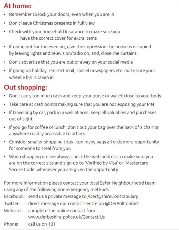 If you require any crime prevention advice, contact your local Safer Neighbourhood Team and view the attached guidance.