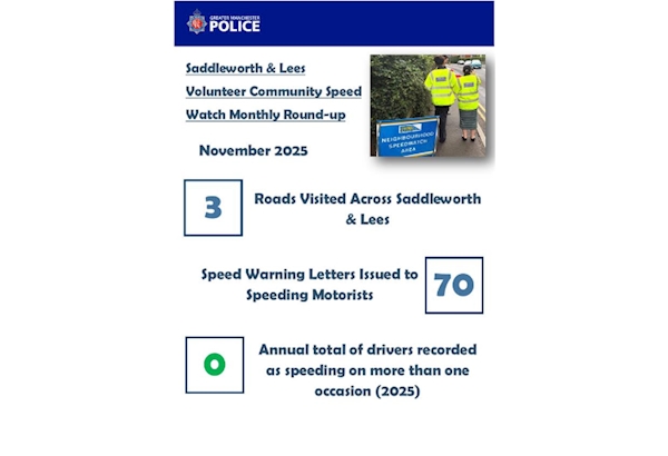 Saddleworth & Lees Community Speed Watch Monthly Round Up - November 2025 |