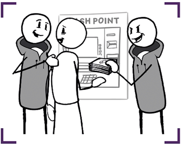 Be aware of people who may be standing too close or trying to distract you as you use an ATM in order to steal your card details and PIN.