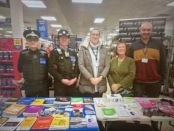 On the 1/12/2025 we was at Tesco on Bridge Road with a crime prevention/ Vawg stall offering any advice and freebies we was joined by Community safety and white ribbon team who had a Stall also was a brilliant turnout and lots of Tesco customers and residents who came to see us.