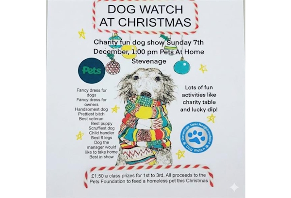 On Sunday 7th December, Stevenage Dog Watch will by hosting their annual, fun Dog Show at Pets At Home Stevenage, 1:00 -3:00pm.
