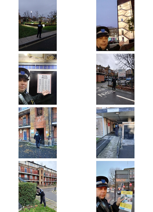 Patrols carried out on estates and local parks; looking out for any Anti-Social Behaviour including the St Saviours Estate, Creasy Estate, Aylwin Estate, Kipling Estate, Arnold Estate, Leathermarket Gardens and others.