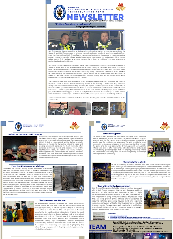 โHereโs a quick round up from me and the rest of the Hall Green neighbourhood policing team.