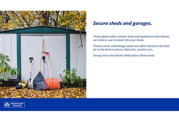 Please see below todays useful crime prevention tip in relation to the festive holiday. Todays message is not just about securing your property but also any garages or sheds where tools maybe stored.