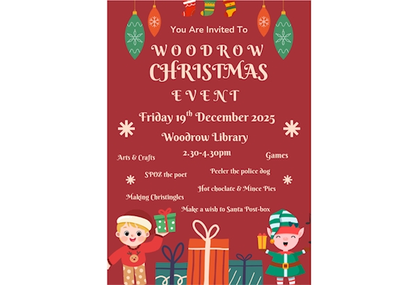Dear Residents, it is that time of year again we have been invited to attend the Annual Woodrow Christmas event on Friday 19th December from 14:30-16:30. our special guest PD PEELER will also be making an appearance and he loves having his photo taken. Alongside this there are lots of other activities on for people to get involved in.