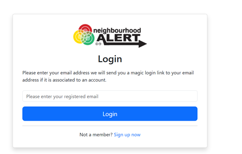 Hi Resident. We just wanted to make you aware of some changes to your Neighbourhood Alert account that you access through Neighbourhood Alert The first change replaces the Username & Password with a ‘One-Time Login Link’, making your account more secure. How to log in to your account (One-time login link)Logging in to your account will allow you to edit your settings and details, should you ever need to. You can login to your account from the Alert website, where you signed up. Clicking on the logo at the top of any Alert email, should take you to this website. Clicking on some of the options below an Alert message, such as the reply button, will also require you to login.