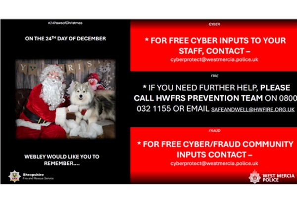During December West Mercia Police Cyber Crime Unit and Shropshire Fire and Rescue Service would like to offer advice on how to stay safe over the festive period….. ![]() | ||