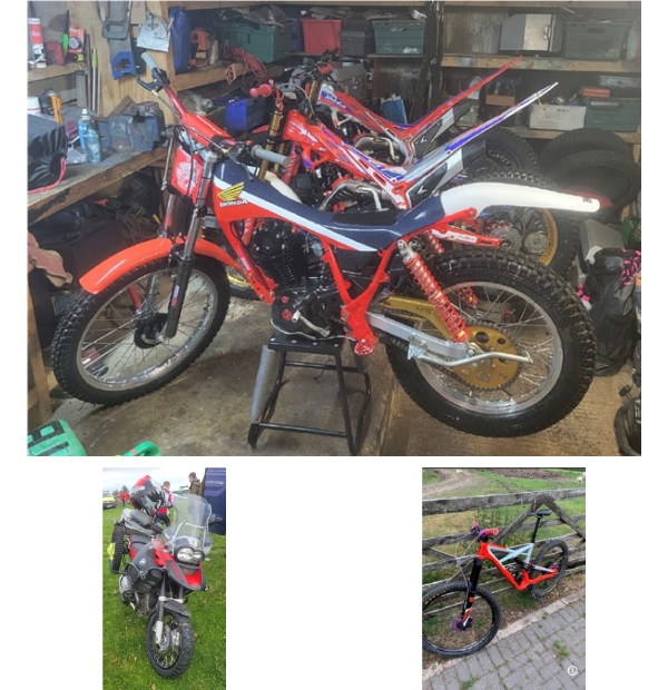 Among the stolen property is a BMW R1200GS motorcycle, three off-road trials motorcycles, a bicycle and several power tools.