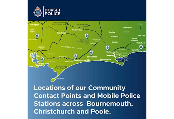 Weโll be out across Bournemouth, Christchurch and Poole at the locations below. Come say hello, ask a question, share a concern, or report a crime.