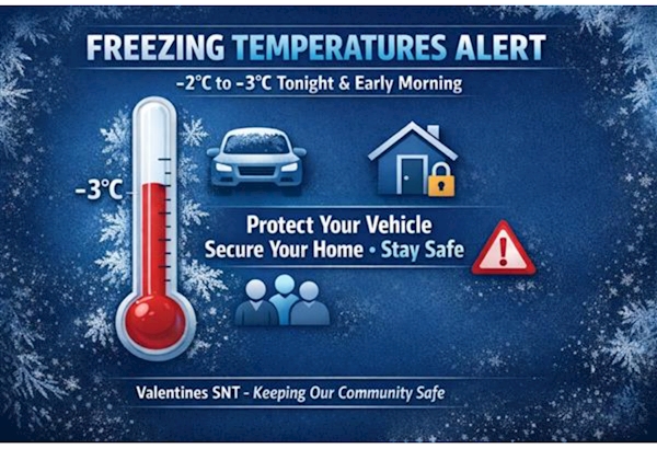 With temperatures dropping to -2°C to -3°C overnight and into early morning, your Valentines SNT wants to share some important safety advice to protect you and your property during this cold snap: