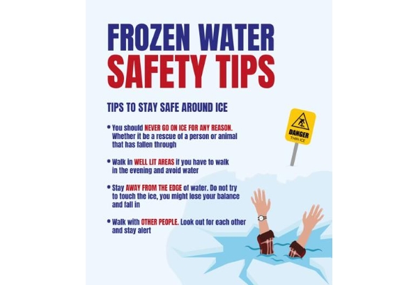 We are in the midst of a very cold snap which is creating lots of Ice, not only on the roads but bodies of water everywhere, This water can be tempting especially for children. Please keep off the ice and make sure children and pets do the same.