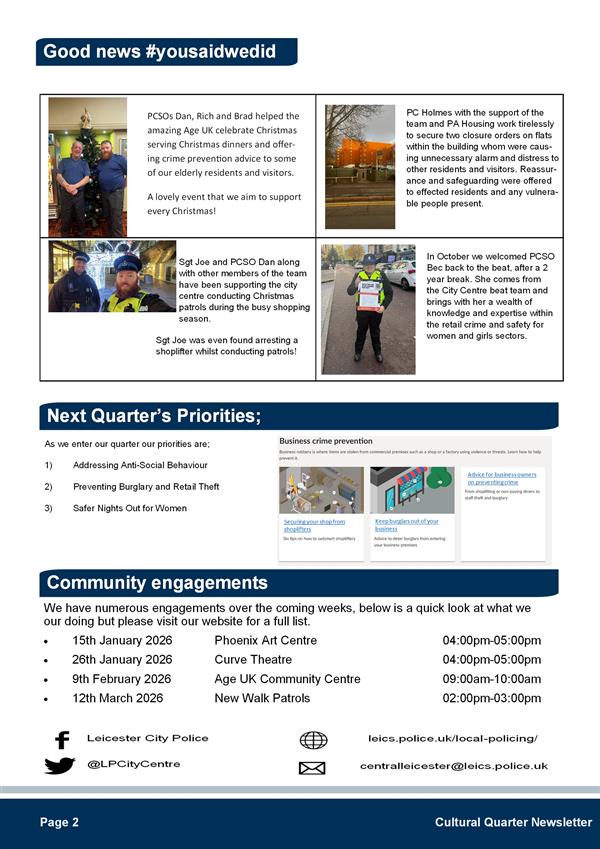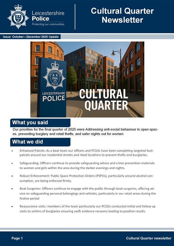 Cultural Quarter – Quarterly Policing Update (Oct–Dec 2025) |