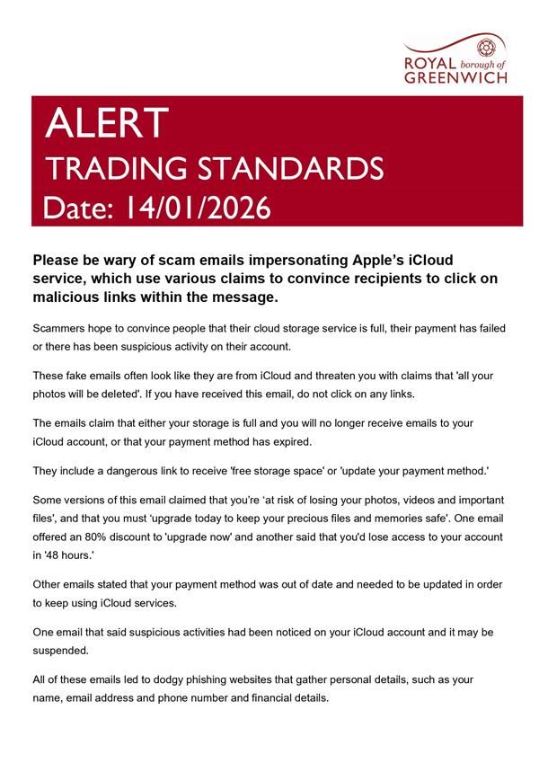 Please read the attached document regarding scam emails impersonating Apple’s iCloud service.