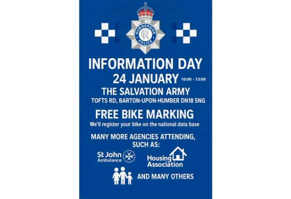 This is a reminder that Barton NPT are organising a Community Information Day on Saturday 24th January at: 📍 The Salvation Army A wide range of agencies will be attending, including Housing Officers, St John Ambulance, Fire & Rescue Service, Family Hub, and more. 🚲 Humberside Police will also be there offering FREE bike marking, so feel free to bring your bike along. This is a great opportunity to meet local services, ask questions, and find out what support is available in your community. 👉 Please share this post to help spread the word and make as many people aware as possible!