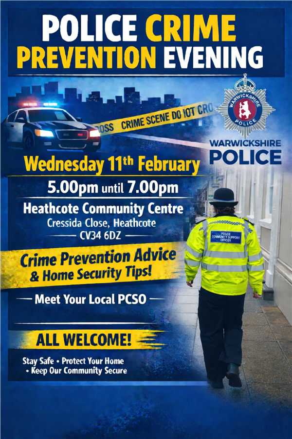 Crime Prevention evening : Wed 11 Feb 17:00 |