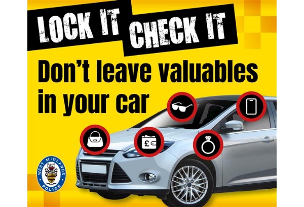 We have had some vehicle crime on the area recently. This is a reminder to make sure your vehicle is locked and secured. Please make sure all valuables are removed from your vehicle.