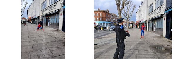 SNT officers on patrol in London Road, attended the celebration of the opening of Ambala shop. The community was entertained by a nice surprise superhero.