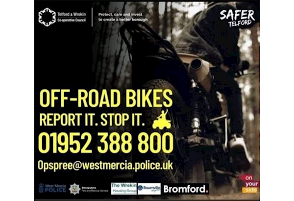 📢 Your information helps us take action. So let’s work together to keep Telford safe everyone!: If you see off-road bikes being used illegally, report it to us via 101 or by emailing opspree@westmercia.police.uk.