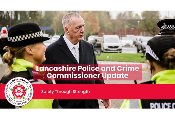 Welcome to the January edition of my monthly newsletter. It has been an exceptionally busy start to the New Year. As you may have seen in the media, alongside Local Government Reorganisation, the Government has this week published its White Paper on Police Reform. I welcome the White Paper’s emphasis on neighbourhood policing and the potential benefits of a National Police Service in improving consistency and performance. However, the core purpose of reform must be to raise standards and strengthen public trust. In Lancashire, strong local relationships and accountability are central to effective policing, and it is vital these are not weakened by larger structures that risk adding cost or complexity. Policing must remain firmly rooted in the communities it serves. This week also saw my budget plans for 2026–2027 approved by the Police and Crime Panel. This follows my recent public survey, in which 66% of respondents said they were willing to pay an increase of £15 or more for a Band D property, equivalent to 19p per week for Band A or 22p per week for Band B, the most common bands in Lancashire, to protect local policing. This 5.4% precept increase is essential to maintaining investment in neighbourhood policing, safeguarding, digital and financial investigations, roads policing and modern IT systems that strengthen frontline services and improve outcomes for our communities. Clive Grunshaw Lancashire's Police and Crime Commissioner