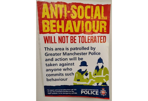 Anti-social behaviour Placards distributed vicinity of Campbell Road. |