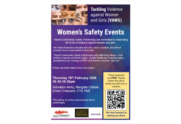As part of the ongoing pledge to reducing violence against women and girls, we want every women to be given the opportunity to feel safe where they live, work, learn or socialise. As such Thanet Community Safety Partnership is supporting a FREE Self-Defence Session.