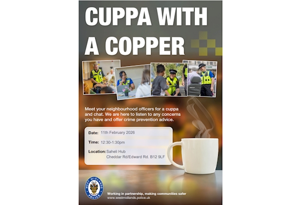 Saheli - Cuppa with a copper : Wed 11 Feb 12:30 |