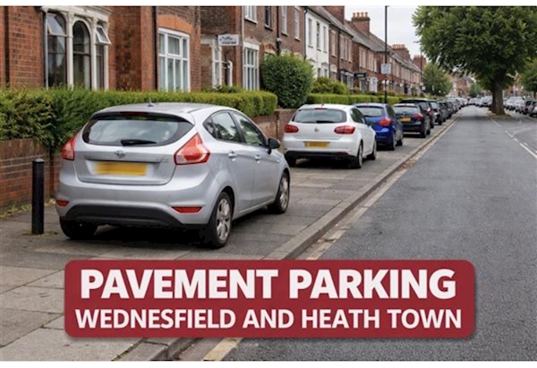 pavement parking is currently being addressed through the West Midlands Police "Don't Plonk It – Park It!" initiative. As of February 2026, local neighbourhood teams are using these alerts to warn drivers that obstructing footways is considered anti-social behaviour and can lead to vehicle seizure if the vehicle is also untaxed or uninsured.