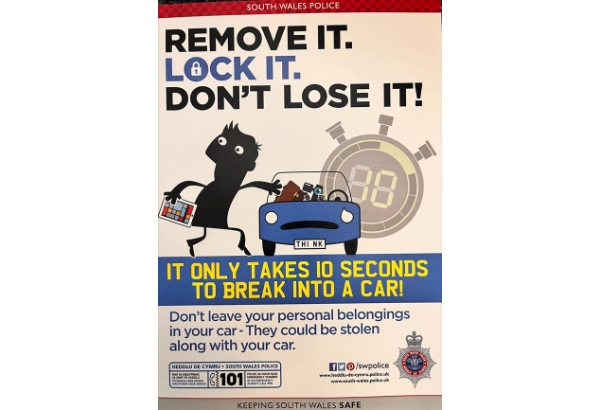 Please ensure you remove ALL valuables from your car over night, even if hidden from sight, such as in the car boot, or glove compartment. Even the smallest amount of money visible could attract an opportunist. Remove all items from view, ensuring your vehicle is secure and parked in a well lit location.