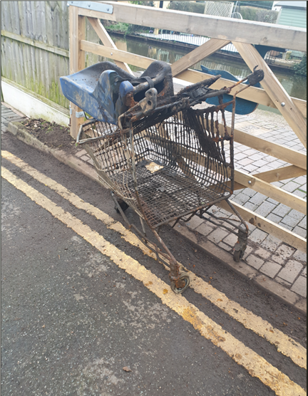 Reports to the Council I came across this shopping trolley on Earls Rd - I reported it to the Council and I have received an update that it has been removed.