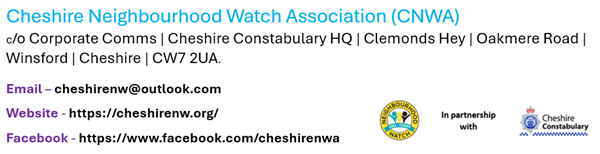 Hi Resident, I am Mike and I am a volunteer with Cheshire Neighbourhood Watch Association (CNWA) and assist with the adminstration of NW schemes. CNWA are currently carrying out an audit of NW schemes in the Chester & Cheshire West area in order to ensure the data we hold is compliant with legislation - current and accurate.