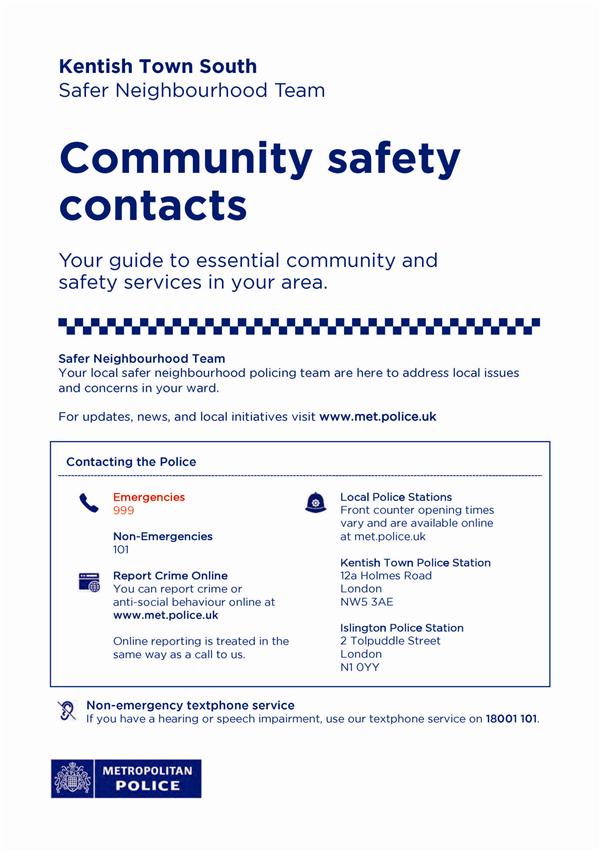 ![]() To assist you in accessing the right support, we have attached a Community Safety Contacts guide containing details of the organisations best placed to deal with a wide range of issues. These include: Camden council Antisocial Behaviour (ASB) TeamFor persistent noise, neighbour disputes, issues linked to housing or tenancy, and non‑crime antisocial behaviour Camden council offer a dedicated Community Safety team who have additional powers to take action against issues affecting the local community. Camden Community Safety can be contacted on 020 7974 4444 or online at www.camden.gov.uk/community-safety