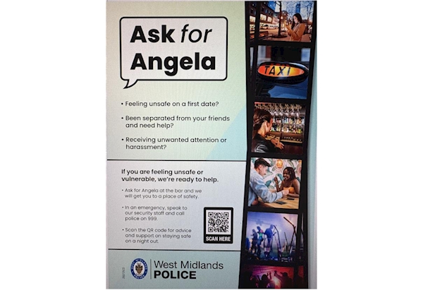 Ask for Angela is a safety initiative supported by West Midlands Police (WMP) that allows people who feel unsafe or vulnerable while on a date or night out to discreetly signal for help. By approaching staff at a participating venue and asking to speak with "Angela," you alert them that you need assistance without drawing attention to yourself.