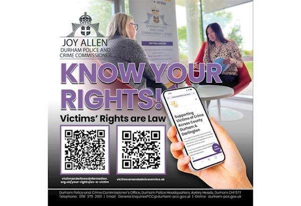An update from Durham Police and Crime Commissioner: Victims’ Rights Are Law... know your rights! |