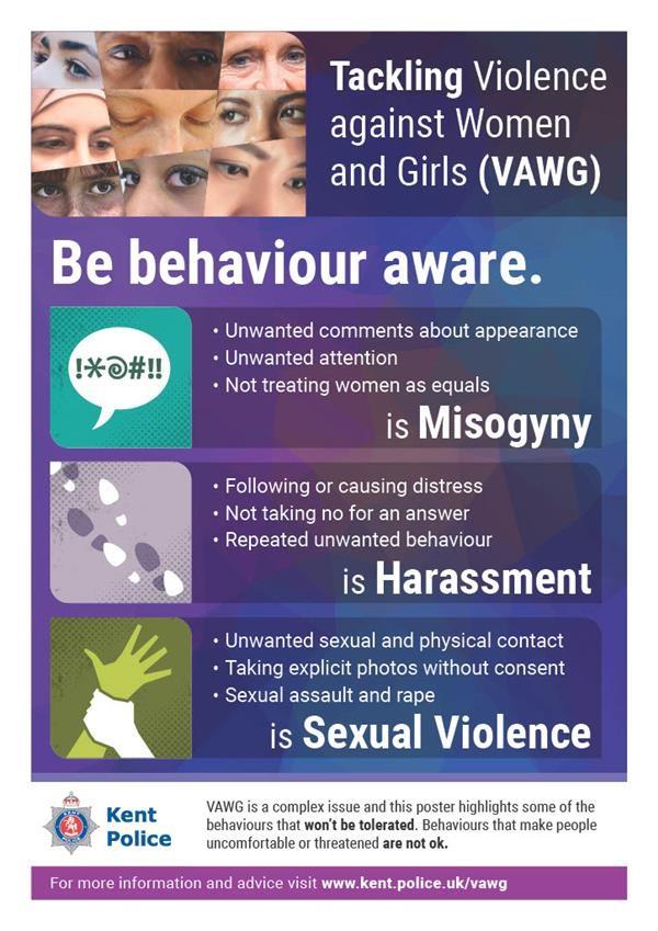 A number of local in‑person VAWG events are also taking place. Further details can be found on the Kent Police website.